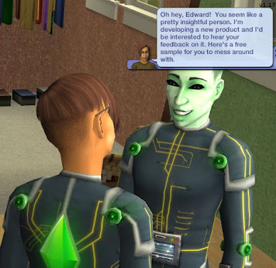 The resident Pleasantview alien Eddie Dreamer. How did he come about??? Darren Dreamer begat Dirk Dreamer. Dirk Dreamer begat Frank Dreamer. Frank Dreamer married (grown up) teen townie Nichole Thompson. Nichole was abducted and Eddie was the result. Yes, I have a pregnancy for all hack for abductions.